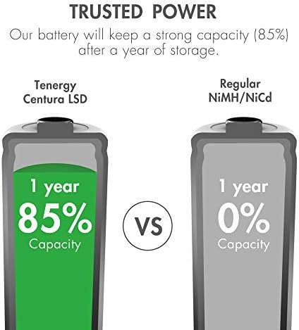 Low self-discharge – Tenergy’s Centura batteries are formulated to retain 85% of battery electrical power when remaining in storage, these rechargeable AA batteries can be saved for 12-24 months and keep a superior capability percentage when as opposed to standard NiMH batteries.